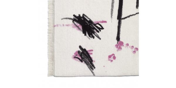 RevolteREVOLTE is an artwork from the series "deutschlanddeutschland" by the German artist Carsten Fock. E15 collaborates with Carsten Fock to produce his original artwork ultimately intended as a series of carpets in a nod to historic tapestries. The high quality carpet is made of pure wool in Nepal with 100 knot quality. REVOLTE is made in the measurement of 2 x 3 m and is available in a limited edition of seven pieces, numbered and signed by the artist. The only dimly visible figure with speech bubble is superposed by copy in the typical Fockian handwriting. However, neither the copy above the figure nor in the speech bubble is legible; it simply served the artist as the architecture of his drawing. In the foreground are wildly crossing lines. The figurative drawing – as often in Fock’s work – takes a less significant role. |