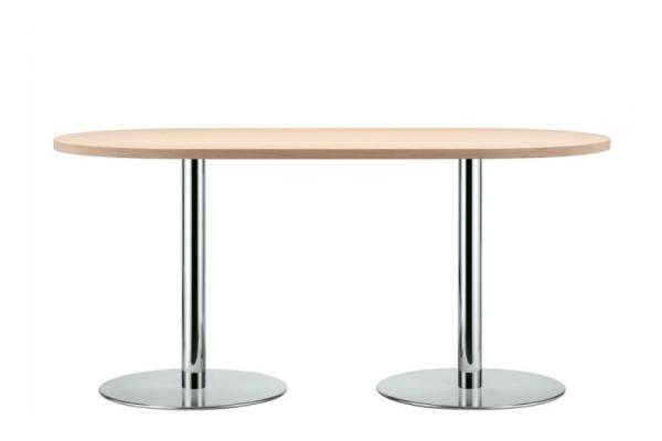 S 1123"TABLES S 1123 - FORMALLY RESERVED, ROBUST AND EASY TO CARE FOR James Irvine has developed tables to match the barstool S 123 H. They are formally reserved, robust and easy to care for - and therefore perfectly suitable for the contract area. With their different heights, tabletop shapes and surface versions, they fit into any environment. Tables in standard hight of 75 cm, one or two-column. Round tabletops available in four sizes, square tabletops available in three sizes. Two-column base with rectangular or rounded tabletops available in three sizes. Surfaces in beech, maple, ash, black cherry, oak and nut or with laminate. Columns chrome-plated, base plates stainless steel, bottom of base plate covered with felt." |