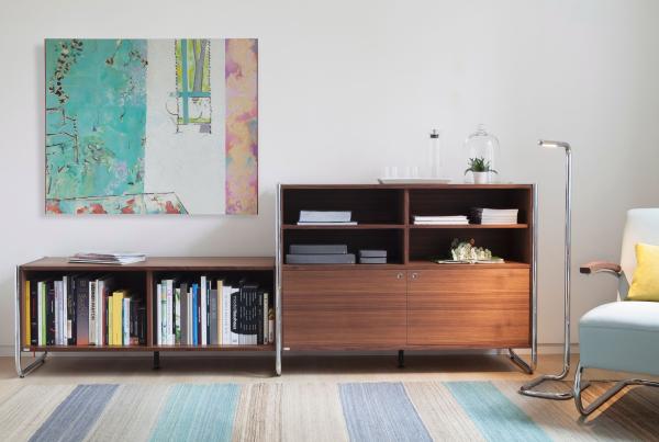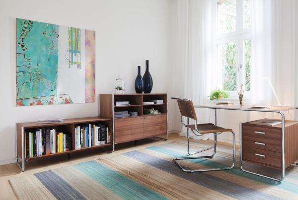 S 290/C104In the spirit of the Thonet tubular steel collection: new sideboard program S 290 With the new sideboard product range S 290 Thonet expands its tubular steel program in the shelf and storage furniture segment. The program consists of four elements that are offered in two heights and widths. The elements are available individually and, due to the possibility to line them up, as an individually composed sideboard, allowing for many different configurations. Especially elegant: frame and body are invisibly interconnected. Program S 290 can also be presented from the back and is therefore suitable for use as a room divider. Optional shelves that can be inserted at various heights are available for all versions. In addition, lockable doors can be added to the elements. The product family is suitable for residential use as well as in offices. Frame chrome plated, bodies made of MDF and chipboard, wooden surfaces veneered with beech, lacquered or oiled oak and walnut, or ash open-porous lacquered. |