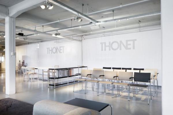 S 360"AN ASTOUNDING ANSWER TO A CHALLENGING QUESTION – THE CHAIR S 360 FOR LARGE-SCALE USE Used by the thousands and successfully tested under the toughest conditions, these chairs can be found in trade fair halls, event halls, museums, churches, town halls and cafeterias. They fulfill the requirements of mass seating: they can be stacked, easily connected, are easy to take care of and are very comfortable. The clever row connection (Thonet patent) makes them additionally special. The frames are connected without any extra parts. This system offers two economical advantages: the comfortable chair width of 58 cm has a row axis dimension of only 53 cm. Several chairs can thus be placed on a surface and handling the chairs is so simple that assembly and disassembly times are clearly reduced. Additional equipment: seat and row numbering, removable writing panel, gliders for hard and soft floors, stacking cart (up to 18 chairs). With or without armrests, frame chrome-plated. S 360: seat and backrest made of plastic in anthracite grey, black or cream white, without upholstery or with partial upholstery for seat and backrest. S 361: seat and backrest made of molded plywood, stained beech, without upholstery or partial upholstery for seat, or fully upholstered.