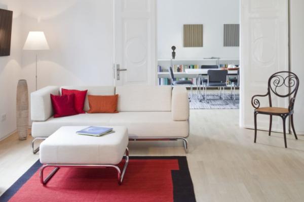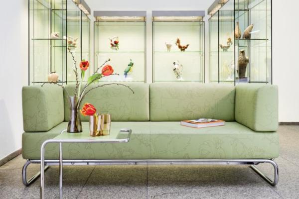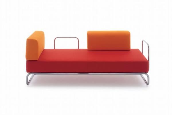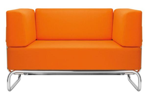 S 5000"ARMCHAIR, DAYBED, CHAISE LONGUE, SOFA: S 5000 – THE VARIABLE PROGRAMME Armchair, daybed, chaise lounge or sofa - a wide range of variations characterize program 5000. James Irvine has reinterpreted a type of sofa that was already a part of the Thonet program in the 1930s: the archetype of a minimalist sofa with a bent tubular steel base. A variable program resulted through subtle interventions, based on a simple, intelligent design idea: the ""modular principle."" Up to four identical upholstery elements are placed on the standard base element as armrests or backrests at the owner's discretion. This idea opens up a broad range of uses and large selection of different versions. Armchair and two- or three-seat sofas. Base frame and armrest/backrest bracket chrome-plated tubular steel. Simple assembly with Allen key. Backrest elements in two different heights. Covered in leather or fabric, removable. The coffee table S 5010 matches this program." |