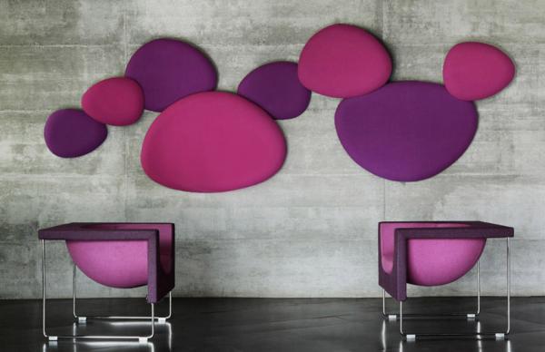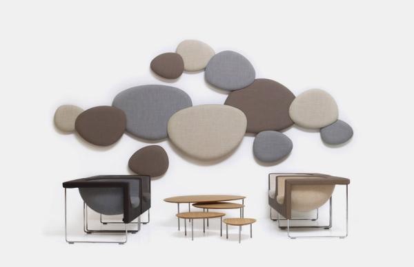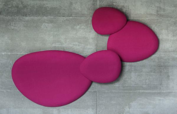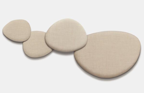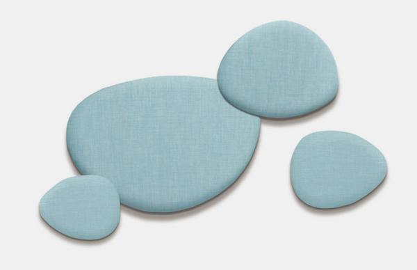 Satellite"Satellite is a decorative acoustic panel system for the wall, created with the aim to absorb noise. Satellite panels have the same organic shapes as the Eclipse tables, coming in four different sizes and shapes. Satellite panels are fixed to the wall at two different depths, in order to play with the shapes and conceal them under each other. This allows further creativity when arranging the panel's configuration on the wall. The acoustic panels are made with noise-reduction foam cladded onto a wooden board and covered with fabrics from the STUA collection. The back part of the panels are also upholstered to have a better noise-behavior. Satellite panels help to absorb sounds and reduce noise in a room.