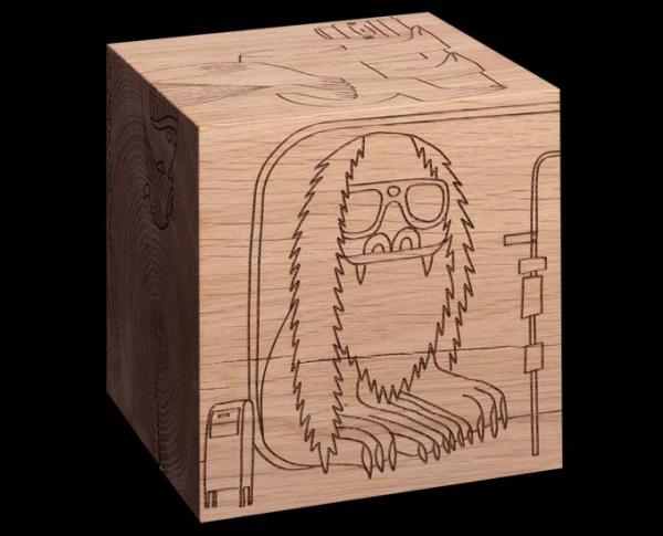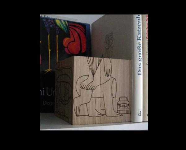 SELECTED - MONSTER DICEMonster Dice combines e15’s typical European oak heartwood with the artwork by Geoff McFetridge using laser etching. McFetridge’s drawing is an extract from the story of a boy who draws monsters that come to life and begin to draw themselves, created by the artist and his four year old daughter. Each of the six sides link interchangeably with one another, offering a multitude of interpretations of the story. The shape and dimensions of Monster Dice come from the solid oak heartwood legs of the famous e15 stool –ST04 BACKENZAHN™. This re-use demonstrates the understanding and dealing with the irretrievable problem of production waste disposal of a precious material like wood, a theme very close to McFetridge’s own thinking. The manufacturing process preserves the distinctiveness of the wood with its individual grain, knotholes and cracks. |