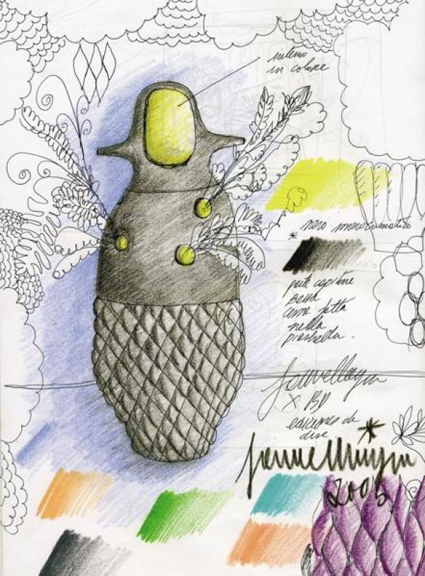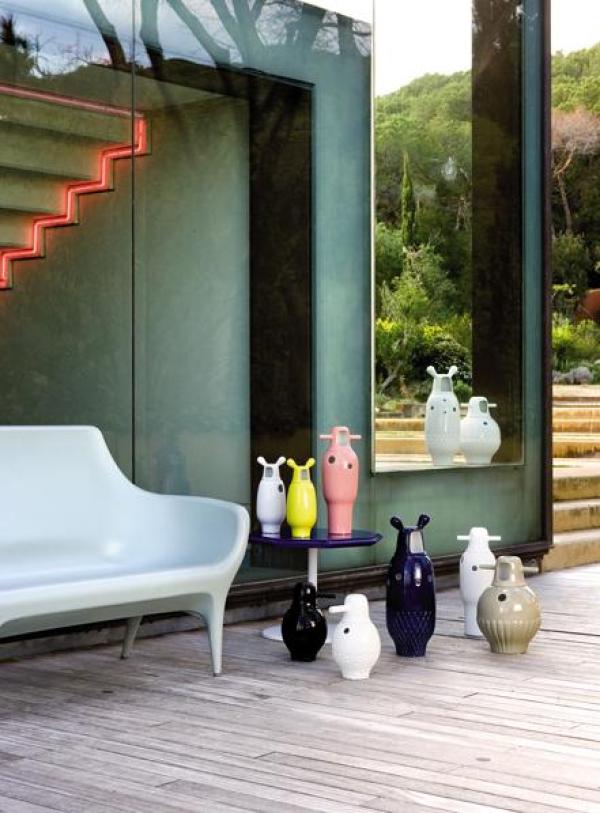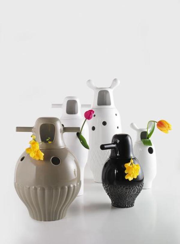 Showtime VasesMade in two pieces in enamelled stoneware porcelain; monocolour (interior and external in white) or bicolour (interior in white and external in different colours, according to the model). Launch : 2006
