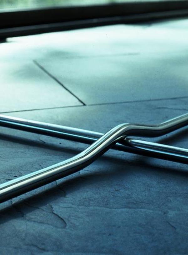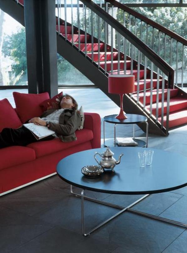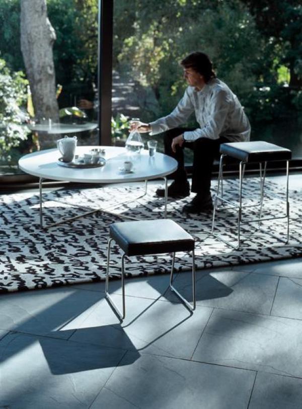 Chromed iron structure. Heat-shaped ABS+PMMA plastic trays, available in shiny white or painted with polyurethane textured in matt white RAL 9003 or black RAL 9005. Upper tray of 81 x 34 x H.3cm. Flat or with opening in the tray for bottles. Launch : 2001 Dimension : WIDTH ø1260 x HEIGHT 410mm |