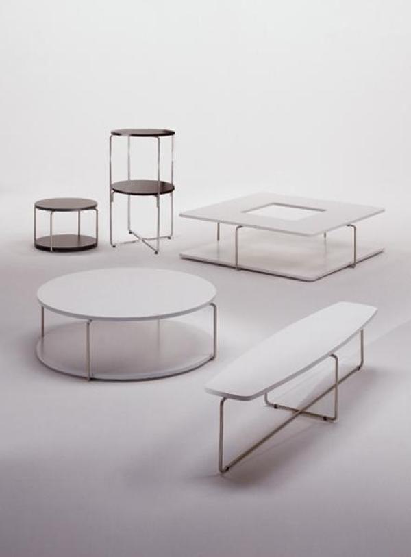 Chromed iron structure. Heat-shaped ABS+PMMA plastic trays, available in shiny white or painted with polyurethane textured in matt white RAL 9003 or black RAL 9005. Upper tray of 81 x 34 x H.3cm. Flat or with opening in the tray for bottles. Launch : 2001 Dimension : WIDTH ø660 x HEIGHT 1110mm |