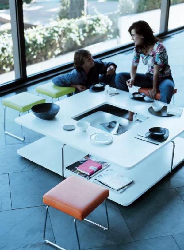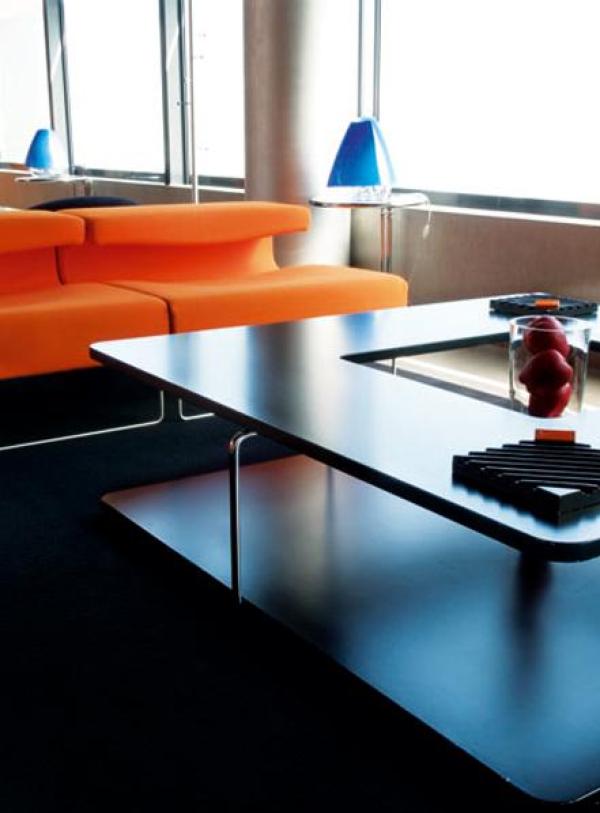 Chromed iron structure. Heat-shaped ABS+PMMA plastic trays, available in shiny white or painted with polyurethane textured in matt white RAL 9003 or black RAL 9005. Upper tray of 81 x 34 x H.3cm. Flat or with opening in the tray for bottles. Launch : 2001 Dimension : WIDTH 1460 x DEPTH 1460 x HEIGHT 410 mm |