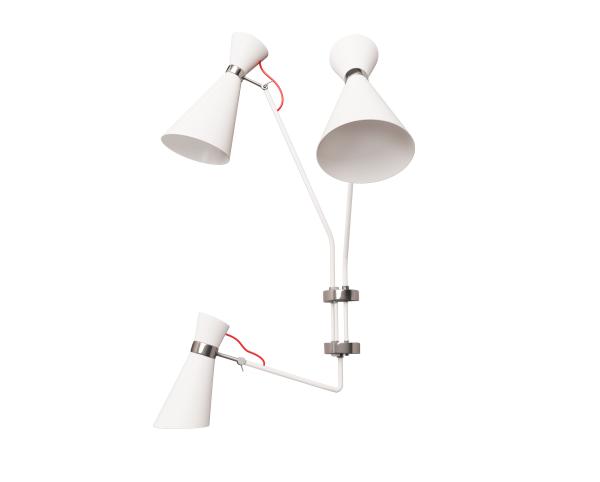 Simone WallSimone wall lamp mixtures functionality with vintage styling cues. This unique light fixture will give rhythm to your working space or to a children's room. With the possibility of choosing bright colors on each lampshade and cords, we think we have created an original and unique design piece. All dimensions are customizable.