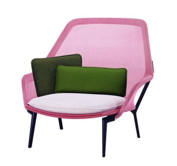 Slow Chair & OttomanRonan and Erwan Bouroullec created this expansive armchair by using an extremely strong, precisely shaped knit which is stretched over the metal frame like a fitted stocking. Thanks to the knit sling cover, the Slow Chair combines soft comfort with ergonomic support, which is further enhanced by thin seat and back cushions. The translucent sling cover replaces the thick cushions of traditional armchairs, resulting in a design that is lightweight, yet generously proportioned. The restrained appearance of the Slow Chair is equally appealing in the living room or winter garden, while offering unrestrained seating comfort. Materials: Metal frame, polished or powder-coated aluminium legs, cover: knitted fabric, seat and backrest cushion: polyurethane foam and polyester wool. Launch : 2007 |