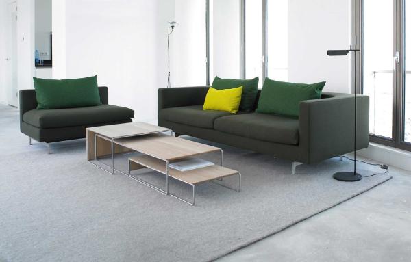 Slow downSlow Down’ is a couch with streamlined upholstery whose clear lines make a seamless transition from a slender arm to a broad back. Characteristic are the distinctive soft and inviting