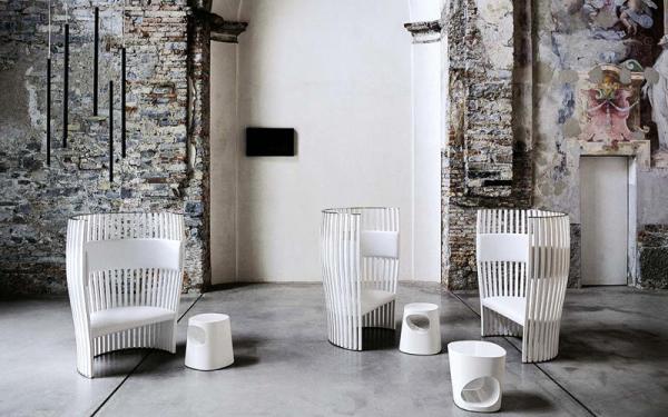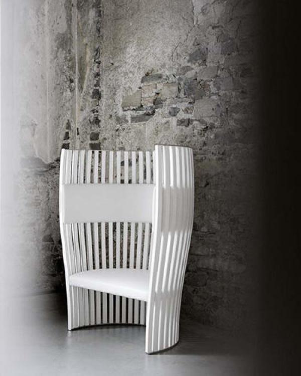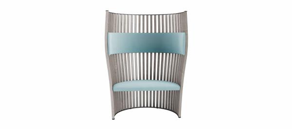 As fascinating as a throne and as protective as a cradle, a seat that combines the concepts of strength and softness in a single piece of furniture. The sleek structure, made from solid beech strips, surrounds and supports the seat and the headrest in birch plywood with fabric upholstery. An important piece, destined to grab attention in whatever space it is placed, whether in the home or in the community.