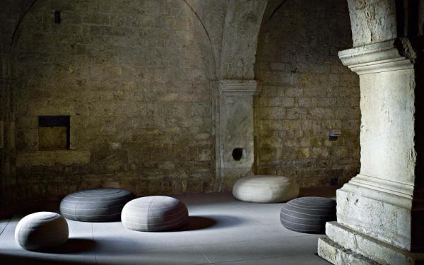 Spin is a family of ottomans which resumes a technique such as “random” stitching, already applied in the Doodle chairs by designers Claesson Koivisto Rune, that traces soft and playful whirls with an almost hypnotic effect. The stitches characterize the generous, rounded shapes of these soft furnishings, available in different sizes and colours.