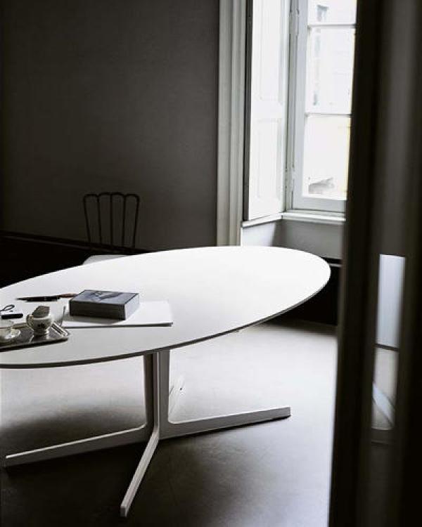 Split High TableA complete collection of round, oval, square and rectangular tables in a range of heights and sizes, all with the same distinctive base. The wide selection of finishes ensures Split table is ideal both for contract needs and for home use