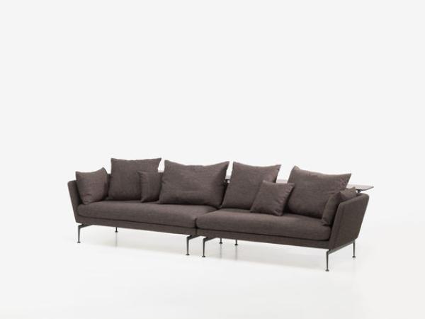 Suita SofaThe Suita Sofa ushers in a new phase in the partnership between Vitra and Antonio Citterio that began in 1985. For the very first time, they have created a modern, timeless and elegant sofa range for the living room in Citterio’s signature style. Suita is a collaborative creation between Vitra and Citterio, born in 1950, and serves to add a system including both sofas and chairs that all subtly combine Italian flair for lightness and elegant workmanship with Swiss industrial quality and precision. Suita takes the classic sofa and gives it a contemporary, lightweight, yet industrial and technical look. The geometrical, clear lines of the body and the soft-worked paddings seem to float on top of the bridge-like feet made of polished aluminium. With their rounded form, these feet can be considered to pay homage to American mid-century design. Suita combines modernity with timelessness in the same way that other classic pieces of furniture do. Combination possibilities The Suita Sofa is part of a large range that includes many individual pieces of furniture. They can all be mixed and matched for use in many different spaces in numerous ways. Suita pieces can be harmoniously integrated into existing arrangements and also create a collage with other pieces in the Suita range. Padding and cushions Suita comes in two different basic versions – with soft or firmer seat cushions – that serve to meet customers‘ various comfort needs. For the softer version, customers can choose between classic or pointed cushions. For the firmer version, the backrest cushions all have a classic cushion shape. Head piece Some pieces in the Suita range can be fitted with a component that lengthens the backrest, which not only serves to offer the head more support, but also creates a kind of barrier from both noise and visual stimuli. Shelves Shelves that are mounted on the back make the Suita Sofa, when placed away from walls, the perfect place for briefly working on a laptop when combined with a chair. If placed against a wall, the shelf creates additional storage or decoration space. Platform The Suita platform is very tightly upholstered and comes in two sizes. As a piece that is a cross between a table and an ottoman, the platform can be used for trays, books and magazines, or for tired feet. Suita Fauteuil adds a compact armchair with a comfortably deep seat and high backrest to the range of Suita products. Viewed in profile, Suita Fauteuil is the visual embodiment of comfort: the deep, softly padded seat and long armrests blend elegantly into the high back bolstered with a neck cushion. Suita Fauteuil can be combined with a matching ottoman and with all other furniture items in the Suita Sofa range. Launch : 2010 |