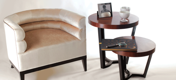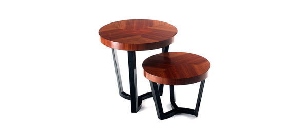 SulivanPRODUCT FEATURES : A round top with a wood veneer divided into curved thirds, matched,and finished with a high gloss varnish; supported by a solid wood base. PRODUCT OPTIONS : High gloss colored lacquer in black or white, custom colors available with an upcharge.