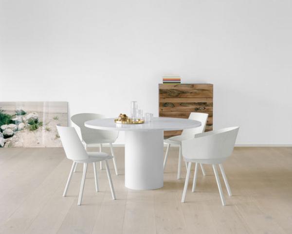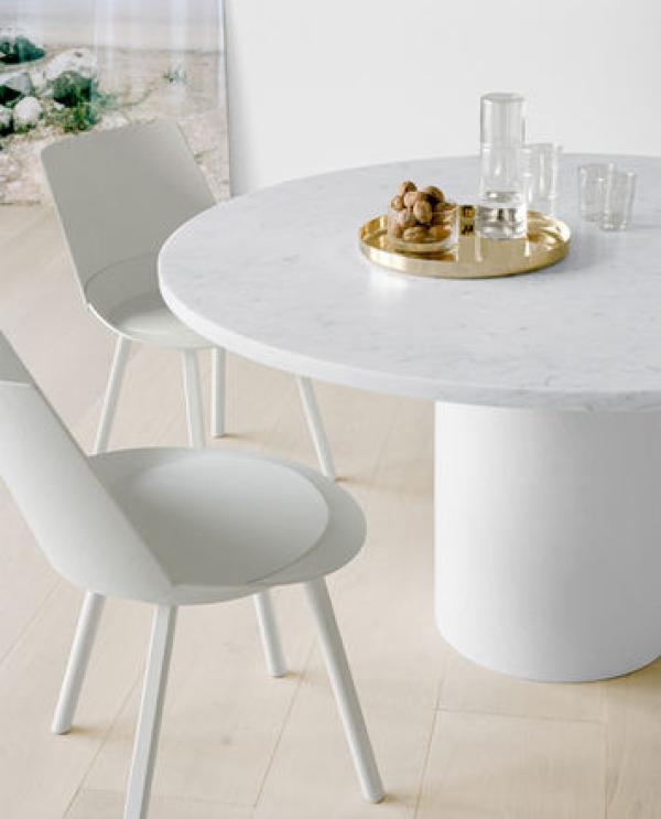 TA20 HIROKITA20 HIROKI is a sculptural round dining table made of rich marble in combination with a harmonising or contrasting coloured steel base. In its initial design based on the side table CT09 ENOKI, the versatile HIROKI extends the family of tables with an elegant and distinctive character in classic and inventive colour combinations. The table TA20 HIROKI entertains as a functional and playful piece. With its well-balanced proportions and 30 mm thick marble top, the round TA20 HIROKI offers un-restrictive seating for up to six people. The projection of the table top measures 450 mm, thus offering ample legroom. The marble top is equipped with a matt oiled finish, which is protective, yet requires maintenance. To avoid scratching of the floor, the table is fitted with a felt ring and delivered in two pieces. |
