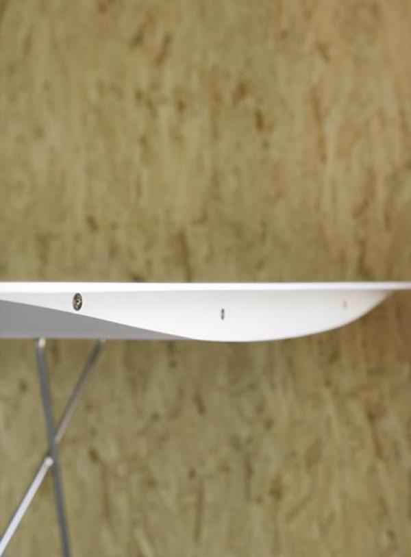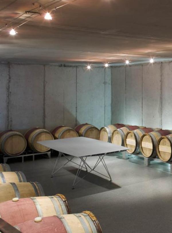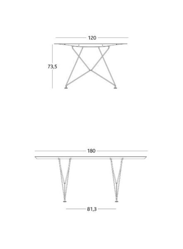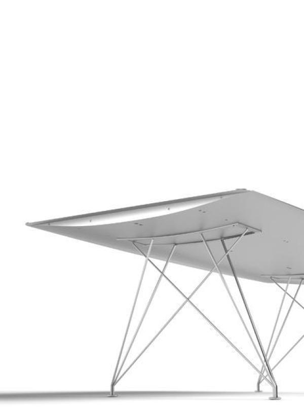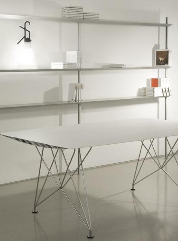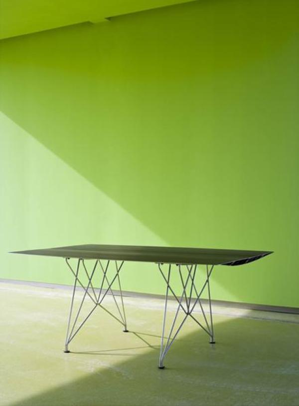 Table B - SteelTabletop in extruded aluminium with scotch anodised polish in silver or matt black, or painted in accordance to a required RAL colour reference. The upper surface can be finished with natural oak sheet and water-based varnish. There are three types of legs: in concrete, stainless steel rod and natural oak with water-based varnish. Launch : 2009