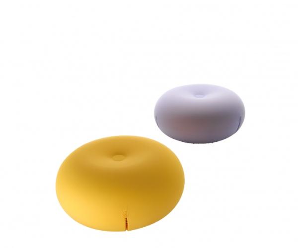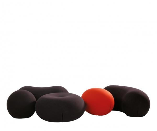 Tato CollectionPouf or footrest in elliptical shape (tato), spherical shape (tatino), round shape for two or more seaters (tatone), curved shape for two or more seaters (tato bean or tato bonbon), lens shape (lunella) in CFC-free flexible polyurethane, with internal anatomical rigid structure and plastic base. The removable cover is available in three different types of bi-elastic fabric, each one available in many colours.