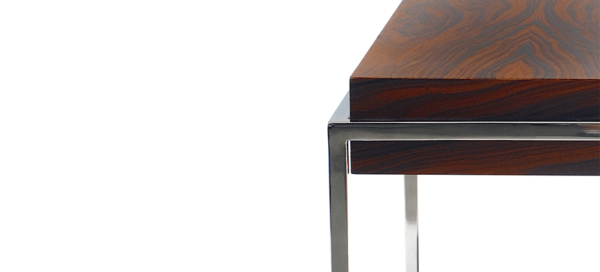 TimesPRODUCT FEATURES : A square table with a handcrafted wood top and lower shelf; supported by a polished stainless steel frame. PRODUCT OPTIONS : Top: Book matched wood veneer of rosewood or palisander finished with a high gloss varnish. Lower Self: High gloss colored lacquer in black or white, custom colors available with an upcharge. Dimensions : WIDTH 600 x DEPTH 600 x HEIGHT 500mm |