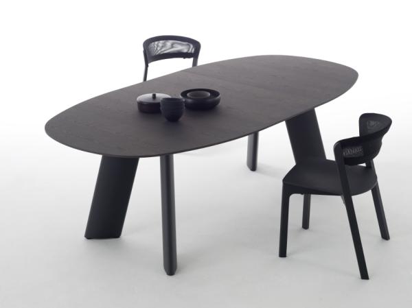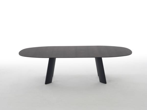 transitIn addition to the original legs, the fixed-top table now includes a new option in the form of a lightweight tubular frame in stainless steel or with an epoxy finish. The double extension option of the extending table (the top and legs can both be extended once or twice independently of each other) combined with the original legs or a tubular frame makes it possible to accommodate the optimal number of seats while also creating extra knee and leg room.