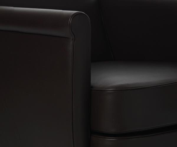 UndersizedArmchair, two- or three-seater sofa in compact dimensions with internal structure in solid wood and plywood with CFC-free soft polyurethane foam, shaped from block, featuring different densities of the material. Cover in fabric or leather. The special leather undersized (cat.s), only in black, is exclusively available for this product.