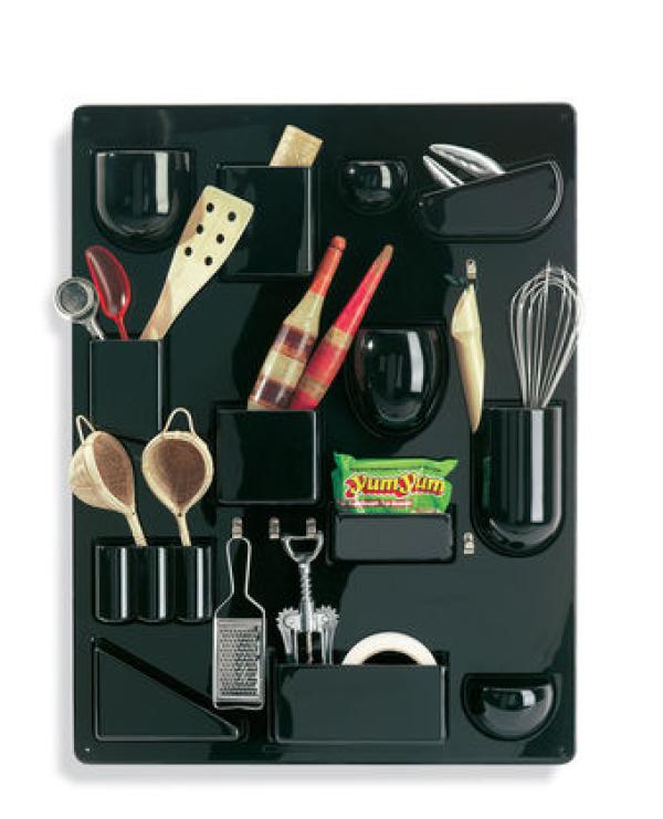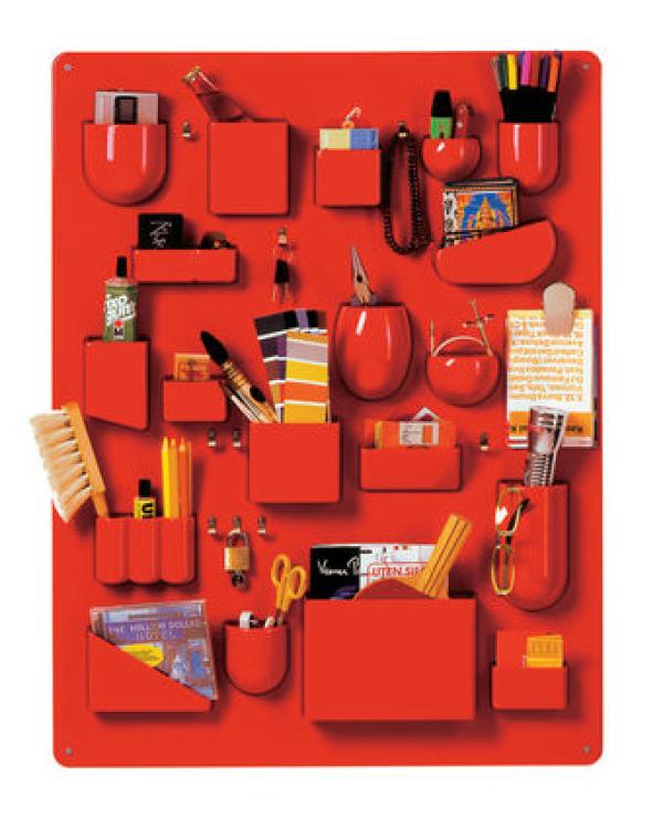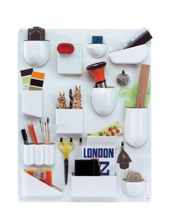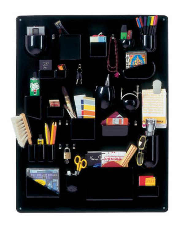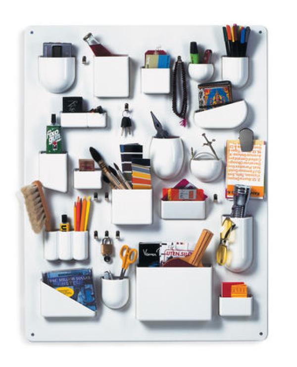 Uten. SiloWith its different-sized and shaped containers, its metal hooks and clips, Uten.Silo organizes offices, kitchens, workshops, bathrooms and children's rooms. Vitra Design Museum produces both the original 1969 version of Uten.Silo and a smaller one dating from 1970. Materials : ABS plastic, metal hooks.