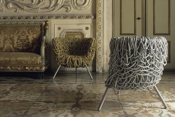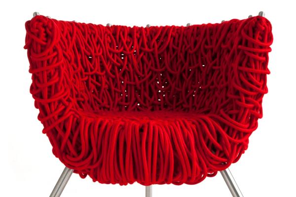 VermelhaWrap-around armchair with steel frame painted with epoxy powders and massive aluminium legs. Several days’ manual work is required to build the armchair, together with high expertise for the weaving. The approximately five hundred meters of special rope with an acrylic core and covered in cotton, is first woven onto the frame to create a structure and then plaited by consecutive overlapping, leaving sufficient surplus to form a kind of random weave which creates an unusual padding. Launch : 1993-1998 Dimensions : w860 x d580 x h770mm |