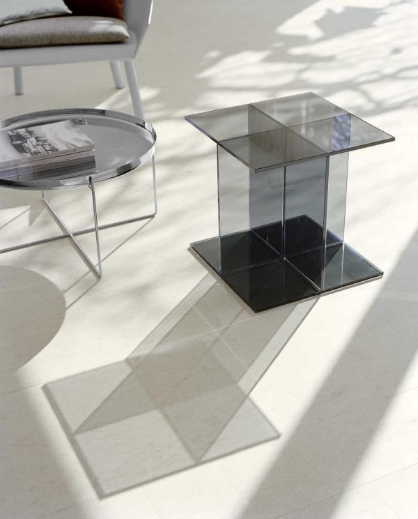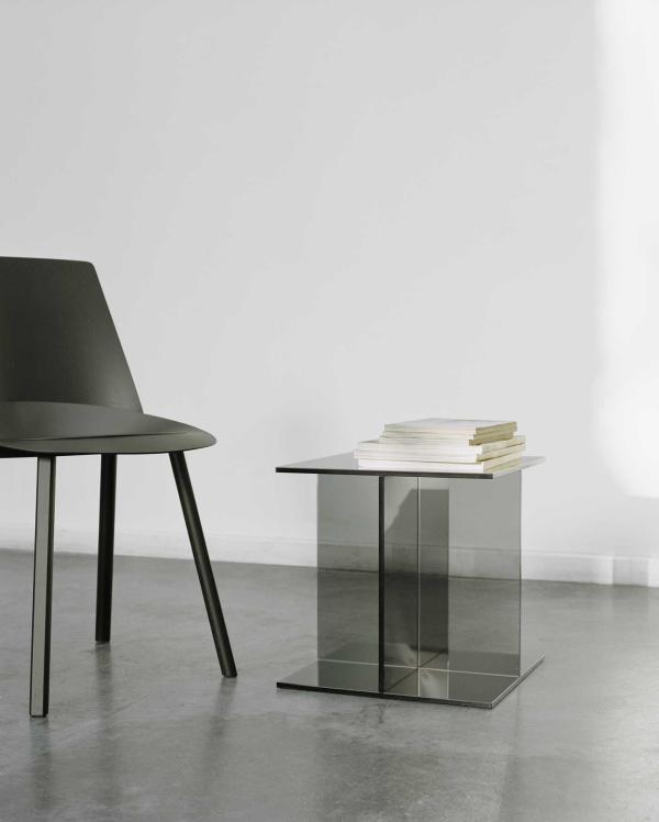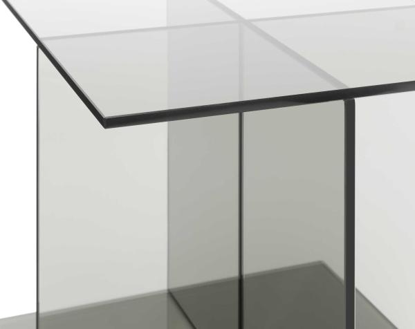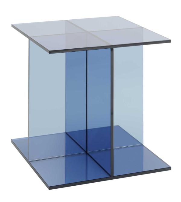 VIERThe glass table CT08 VIER is the latest side table from e15 and represents the rational development of the glass side table CT07 DREI. Made from five coloured glass slabs joined together, the table designed by Philipp Mainzer extends the e15 range of side tables complementing the sofa system SF03 SHIRAZ. Due to its symmetric geometry, the table in dark blue or smoke grey solid coloured glass, appears as a smart and stylish object which can serve as a side table, storage unit, bedside table or newspaper stand. |