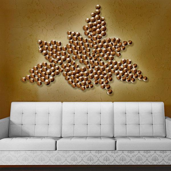 Vineyard MuralFew people can think of a bigger luxury than the sight of a gorgeous green vineyard bathing in the sunshine. From the superb Champagne wine region to Douro’s luscious hills, every yard is brimming with tiny gold nuggets capable of producing one of the most desired drinks in the world. In a tribute to these precious pearls, we created the Vineyard mural, a fusion of hammered brass concave petals through which a golden light flows. |