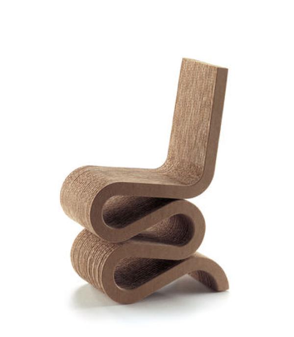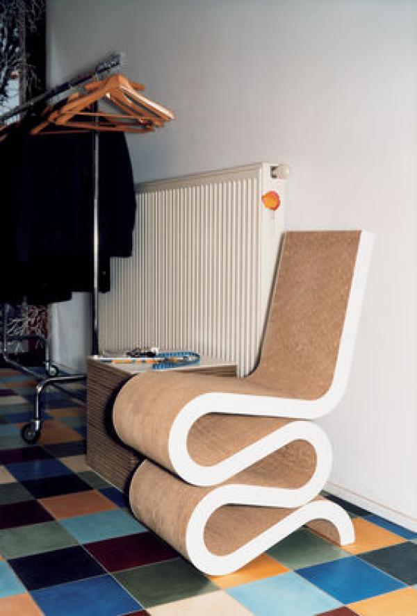 Wiggle Side ChairFrank Gehry is well known for his use of unusual materials. With his "Easy Edges" furniture he succeeded in giving a new aesthetic dimension to such an everyday material as cardboard. Despite their appearing bafflingly simple, the "Easy Edges” are nonetheless constructed with an architect's care and are extremely robust and sturdy. Having given them a makeover from the world of colour, Gehry has given the "Easy Edges" a new dimension - colourfulness. Corrugated cardboard, edges made of hardboard, natural.