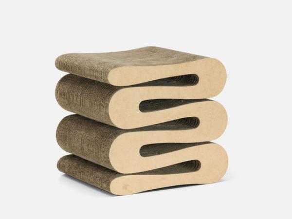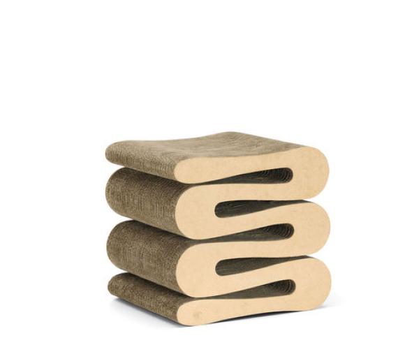 Wiggle StoolWith the furniture series Easy Edges, Frank Gehry gave a new and surprising aesthetic dimension to cardboard, an everyday material. Although they look amazingly simple, the pieces in Easy Edges pieces owe their robustness and structural stability to the architectural quality of the designs. The Wiggle Stool is vaguely reminiscent of traditional African stools and — like such predecessors — makes an attractive accent in any interior. Materials : Corrugated cardboard, edges made of natural or lacquered hardboard.
